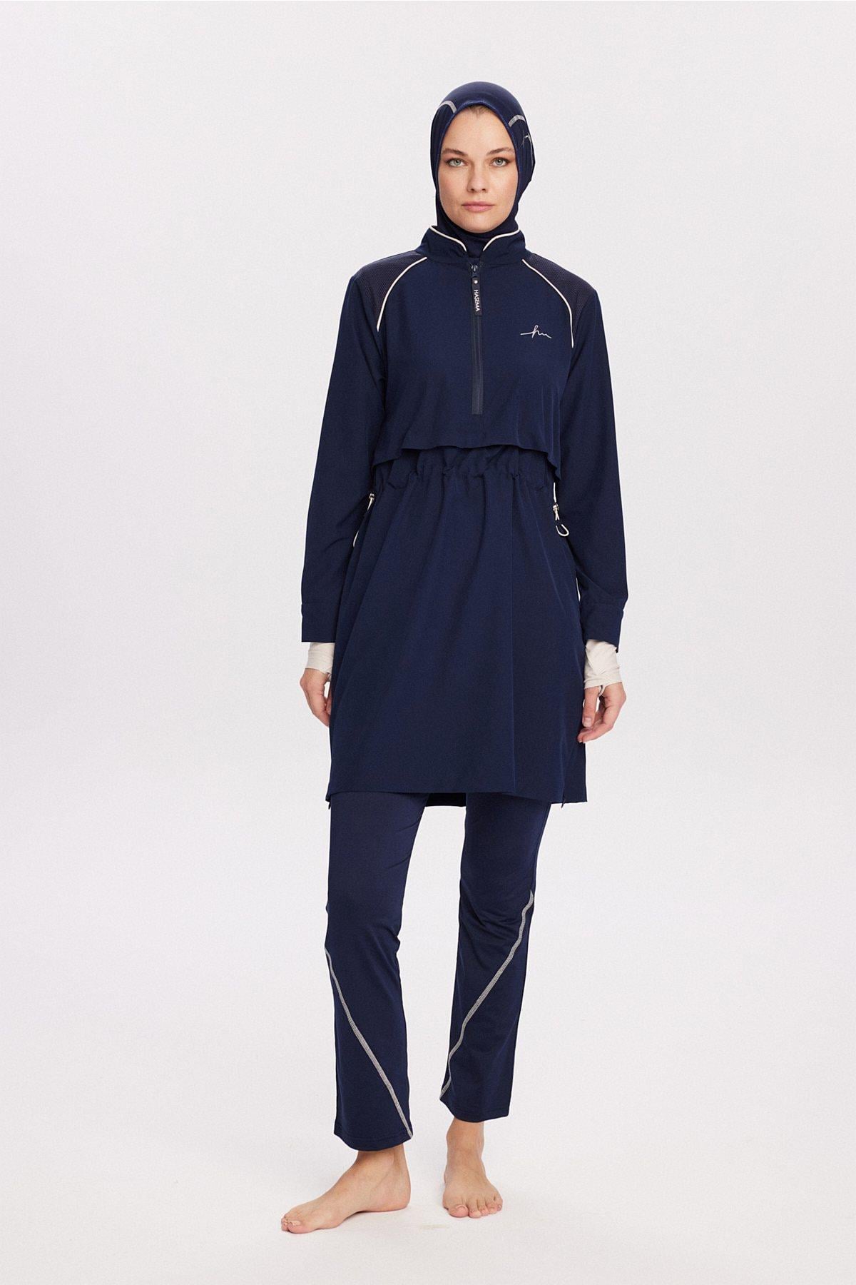 Haşema Performance Navy Blue 5-Piece Full-Covered Swimsuit Set 2019